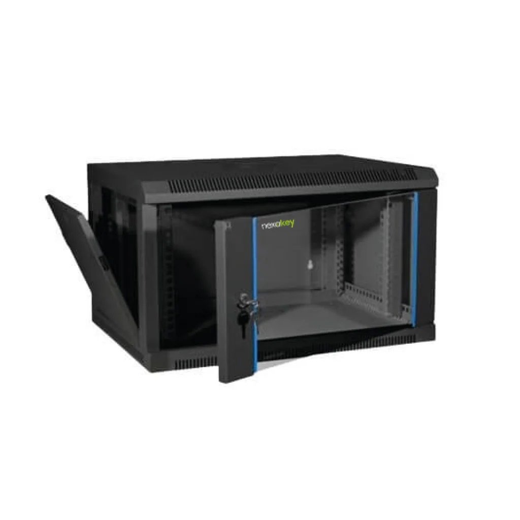 Nexakey offers compact and durable wall mount server racks like the NX-6U Wall Mount Server Rack and the NX-9U Wall Mount Server Rack. These racks are perfect for optimizing space in small to medium IT setups by securely housing patch panels, switches, routers, and other 19-inch standard equipment.