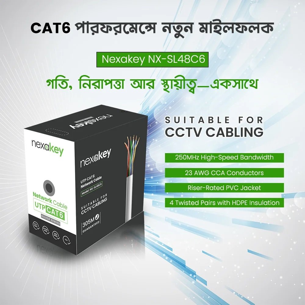 Choose from Nexakey’s premium UTP/Network Cables, including popular options like the NX-GL56C6 305m Cat6 UTP Cable and NX-SL48C CCA UTP Cable. Designed to meet Cat6 standards, these cables deliver fast and secure data transmission, ensuring optimal internet and LAN connectivity for residential and commercial applications.